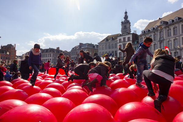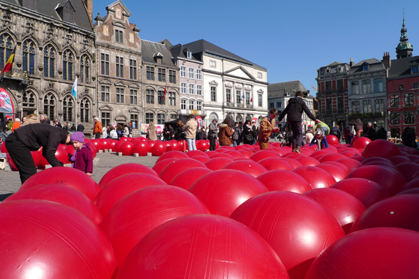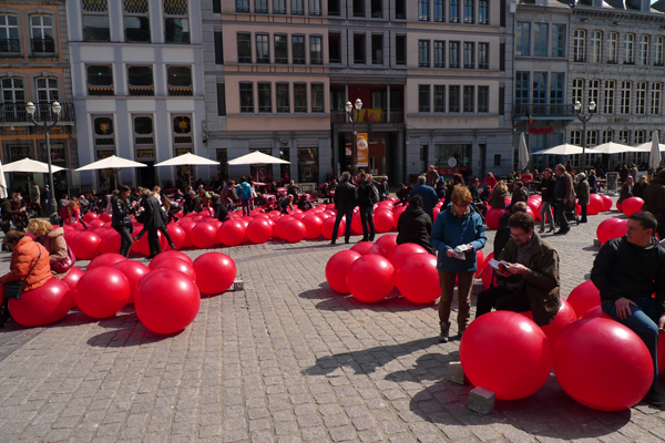 Pour le lancement de la deuxième saison de Mons 2015, Atelier Blink a conçu et réalisé une installation publique composée de 300 ballons, pensée comme une intervention visuelle et tactile dans l’espace urbain historique de la Grand‑Place de Mons.